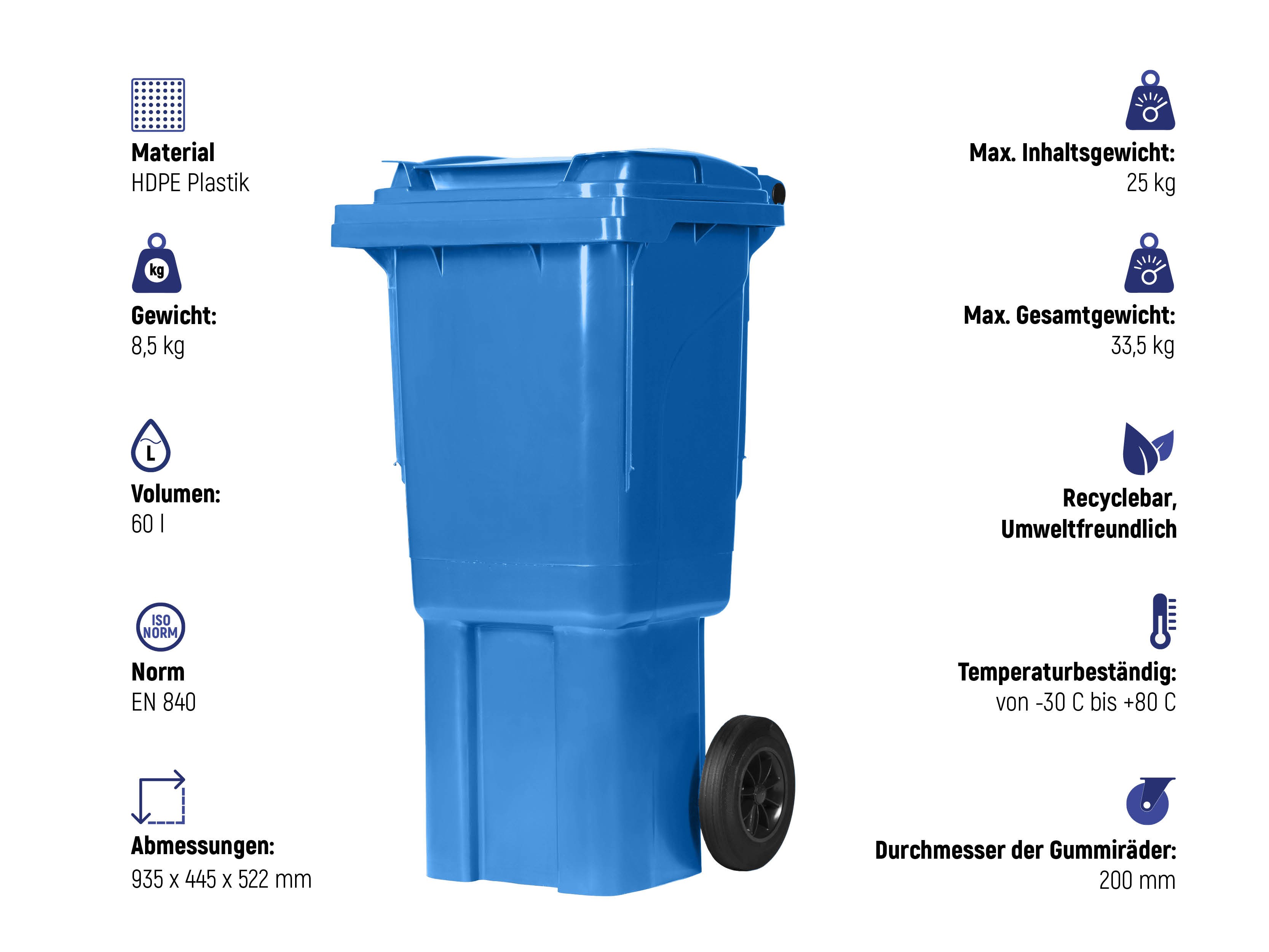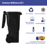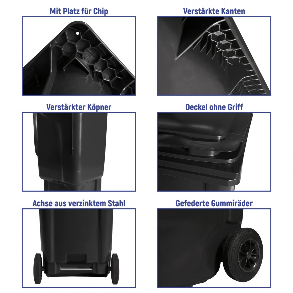 Dank seiner kompakten Maße (Höhe: 220 cm, Breite: 114,5 cm, Tiefe: 121 cm, Gewicht: 150 kg) eignet sich der Container auch für Standorte mit begrenztem Platzangebot.