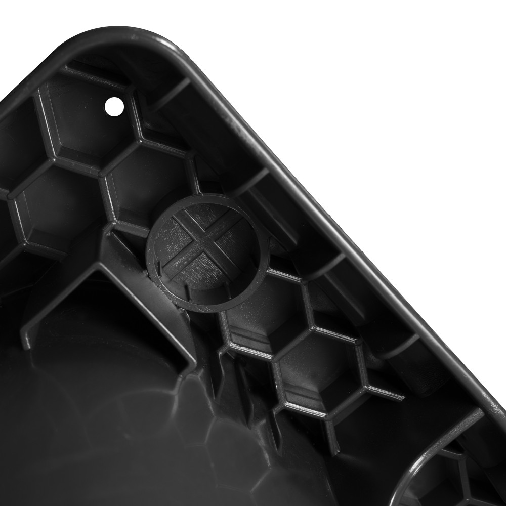 Die sichere Einwurfklappe mit einer Öffnung von 97 × 47 cm schützt den Inhalt vor Regen und verhindert unbefugtes Entnehmen. Bei Bedarf abschließbar. Halterung für das Auswurfdeckel in 127 cm Höhe.