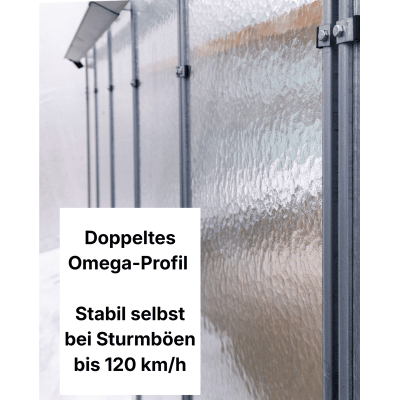Unsere Gewächshäuser bieten höhere Qualität und Nutzwert. Die Konstruktion aus feuerverzinktem, robustem Blech und Verbindungselemente aus rostfreiem A2-Stahl gewährleisten außergewöhnliche Widerstandsfähigkeit und Stabilität auch unter anspruchsvollen Wetterbedingungen.