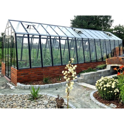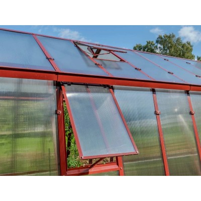 Mehr lesenGewächshaus aus robustem, feuerverzinktem Blech mit Lackierungsoption (5 Farben). Höhe 2,09 m, Breite 3,03 m, Länge ab 3,03 m (Fläche 9,18 m2). Windbeständigkeit bis 120 km/h mit 10 Jahren Korrosionsgarantie. Einfache Montage. Inklusive Doppelflügeltür, 2× Dachfenster mit automatischer Öffnung, 2× Fenster in der Rückwand, beidseitige Regenrinne, Aufhängehaken für Pflanzen und Halterungen zur Montage eigener Regale im Gewächshaus.