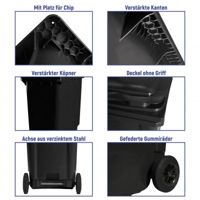 Mehr lesen✅ KOMPATIBEL MIT DEUTSCHEN MÜLLAUTOS und von den meisten Müllabfuhrunternehmen und -verbänden akzeptiert