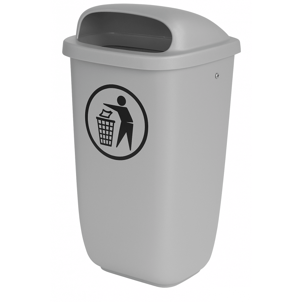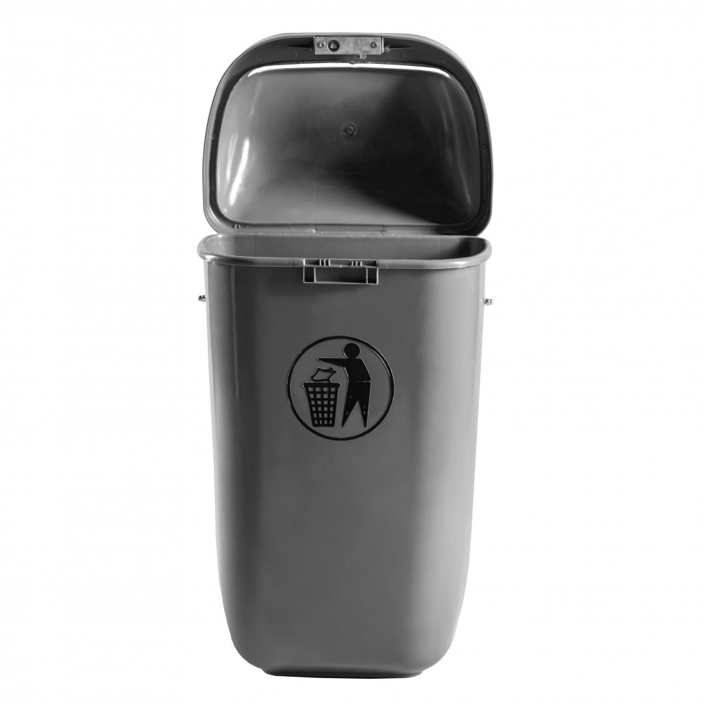 Abfallbehälter 50 l von Hardwex zum Aufhängen in Hellgrau für bis zu 14 kg Abfall. Leicht zu reinigen, wetterfest, UV-Licht-resistent, sicher gegen Vandalismus. Nur mit Ihrem speziellem Schlüssel zu Öffnen.